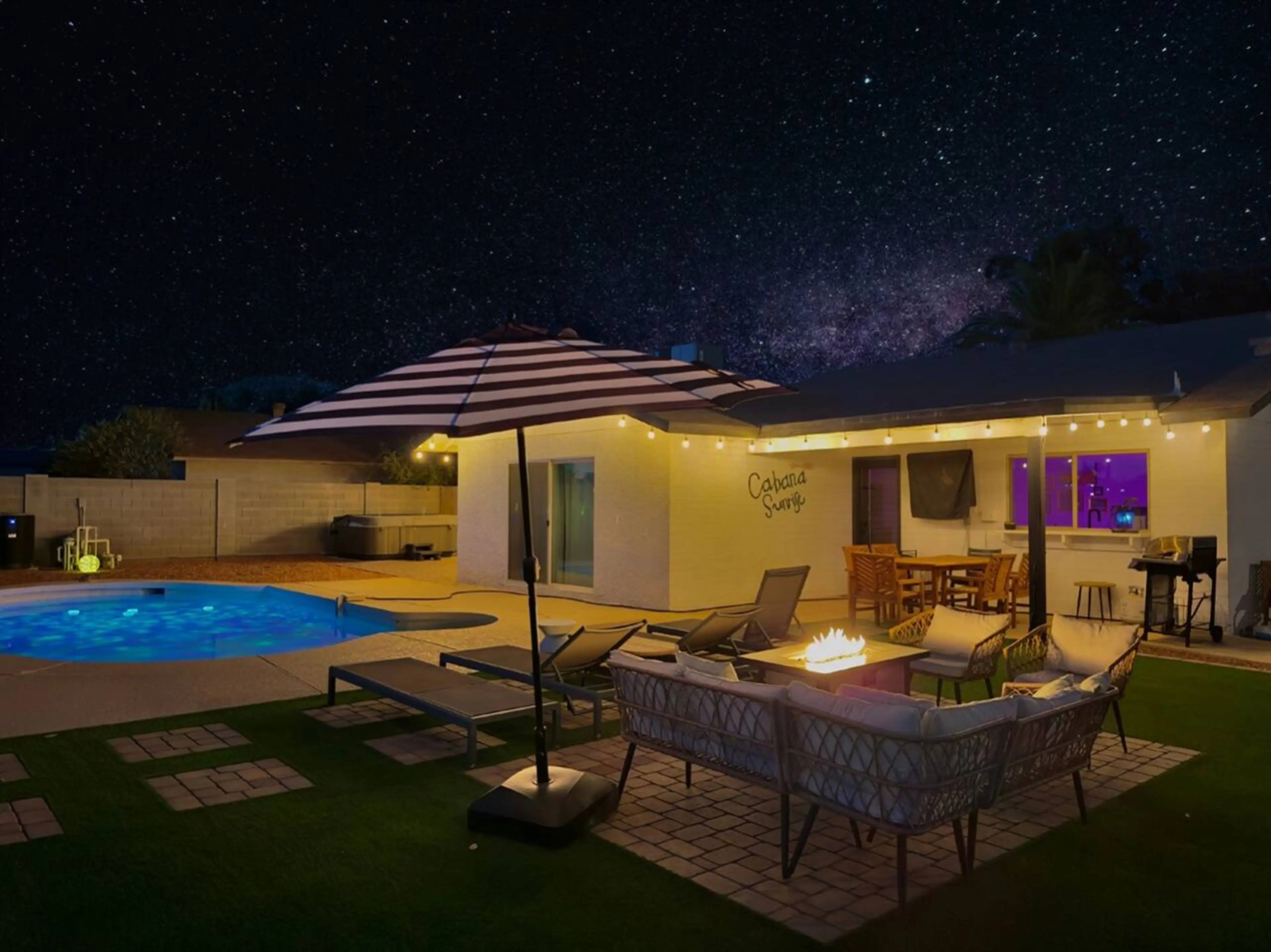 Escape to our spectacular resort-style retreat, perfect for an amazing vacation! This home features high-speed Wi-Fi, pool w/poolside loungers, a hot tub, mini golf, ping-pong, and an outdoor patio. Enjoy the spacious main spaces, plus the bonus bunk room. In a prime location near Paradise Valley Ma...